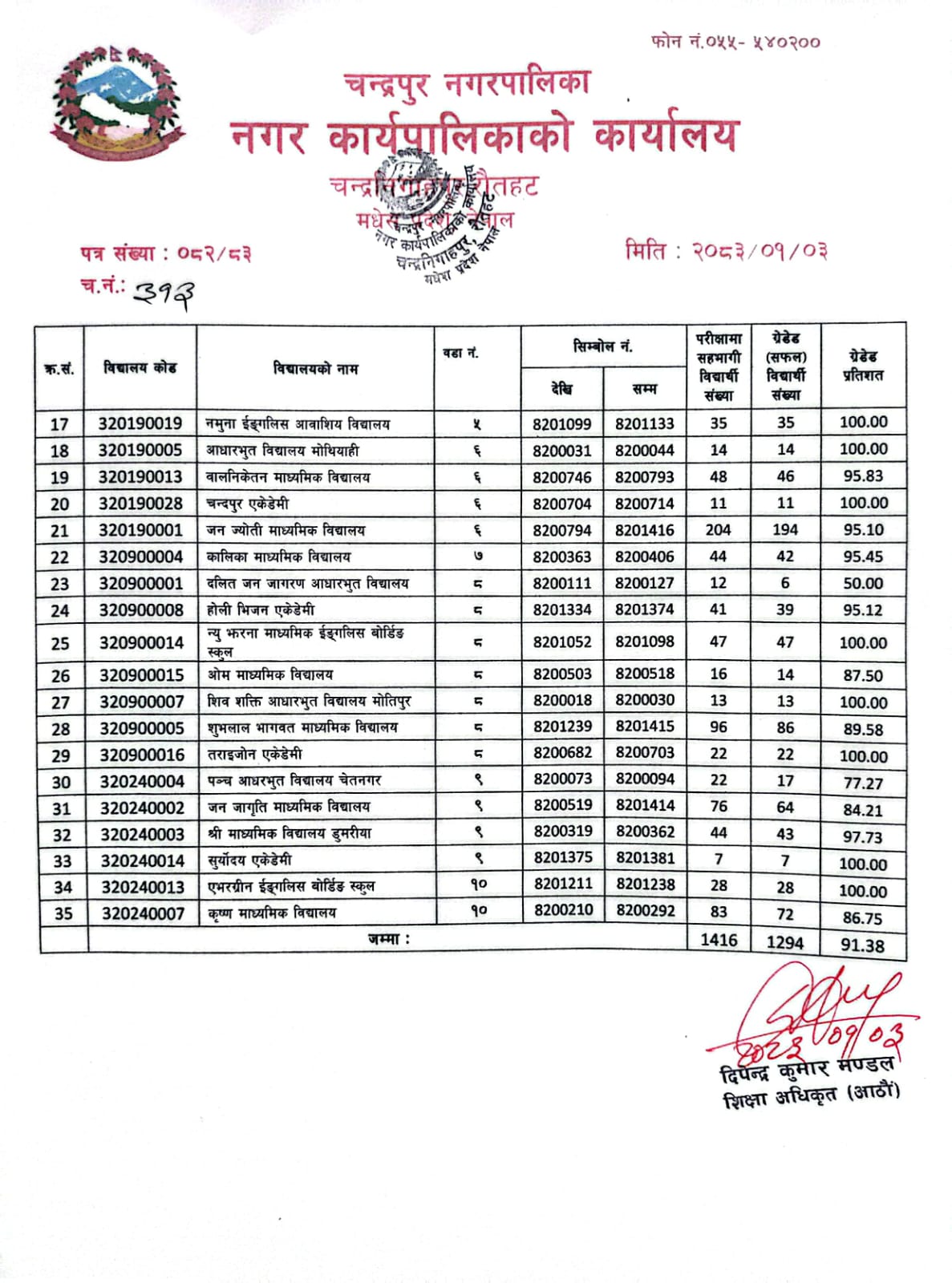 चन्द्रपुर नगरपालिकाका जनप्रतिनिधिहरु,विभिन्न शाखाका कर्मचारीहरु तथा सामुदायिक विद्यालयका प्र.अ.हरुको विवरण