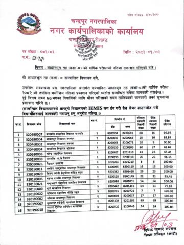 आधारभूत तह कक्षा ८ को नतिजा प्रकाशन सम्बन्धमा ।