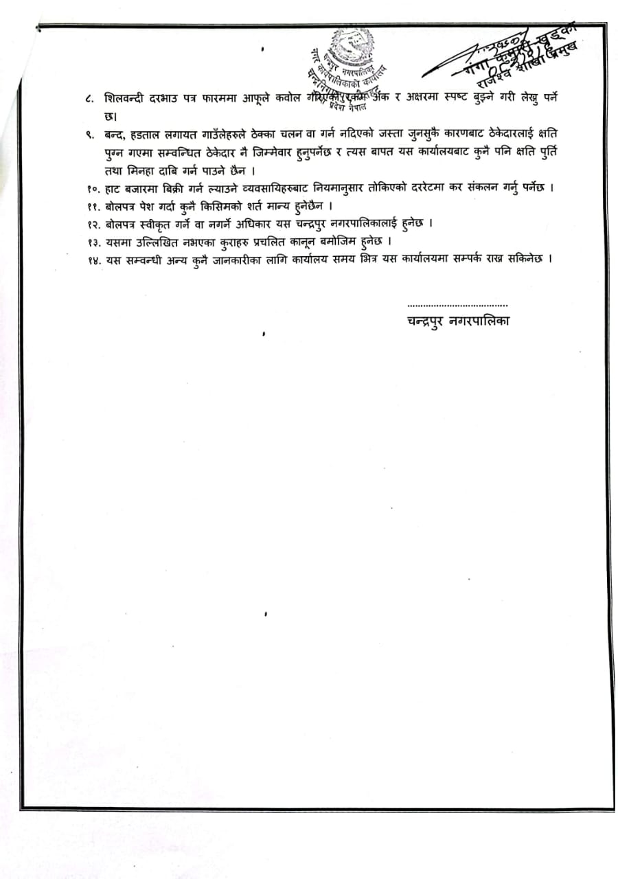 आ.व. २०८२।०८३ को लागि आन्तरिक आय ठेक्का बन्दोबस्त सम्बन्धि सिलबन्दी दरभाउपत्र/बोलपत्र आह्वानको सूचना ।