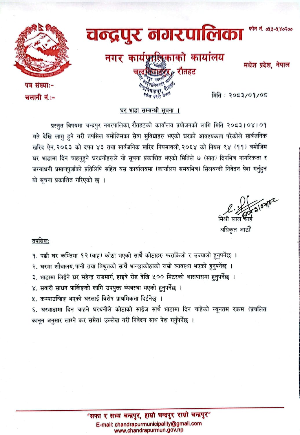 चन्द्रपुर नगरपालिकाको अनुरोध ।