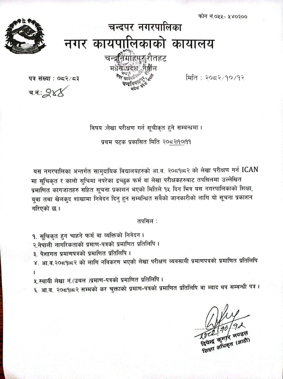 चन्द्रपुर नगरपालिकाको आ.व. २०७५/०७६ को २०७५ माघमसान्त सम्म भएको कार्यक्रमहरुको विवरण ।