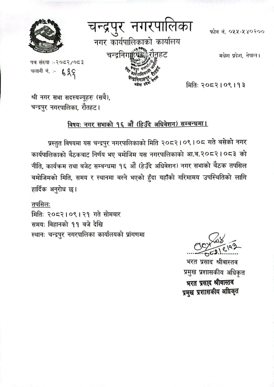» हिउँदे नगरसभा सम्बन्धमा ।