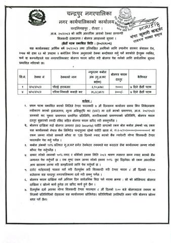 अा.व. २०७५।०७६ काे ठेक्का सम्बन्धी शिलबन्दी बाेलपत्र अाहवानकाे सूचना । प्रथम पटक प्रकाशित मिति २०७५।०४।१२