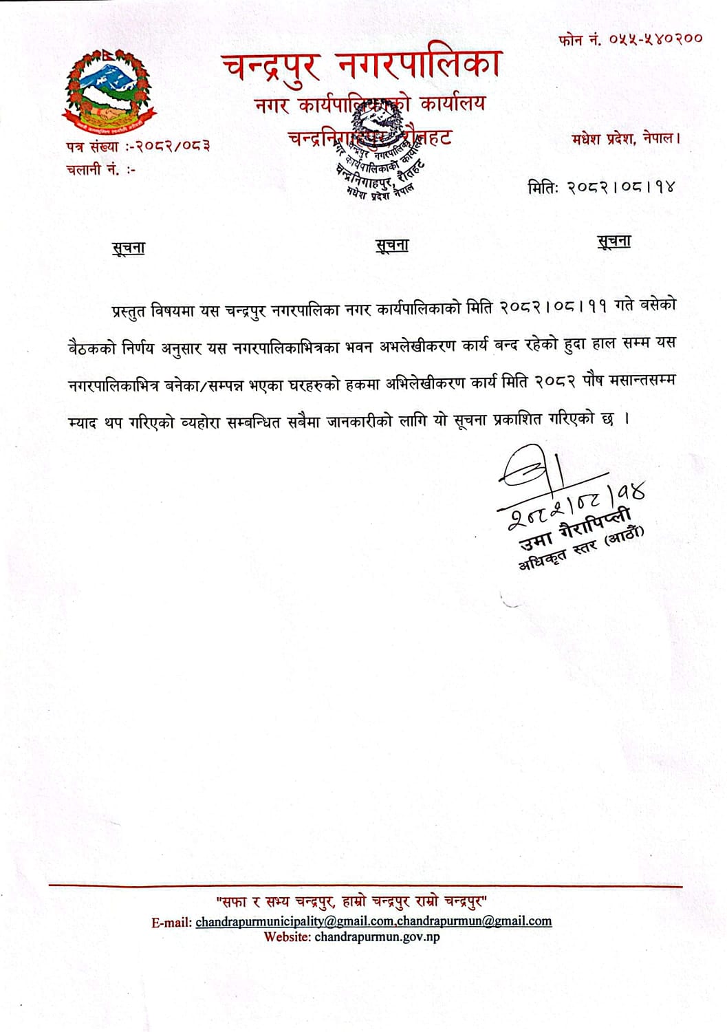 चन्द्रपुर नगरपालिकाको बसपार्क संचालन तथा व्यवस्थापन कार्यविधि २०८२