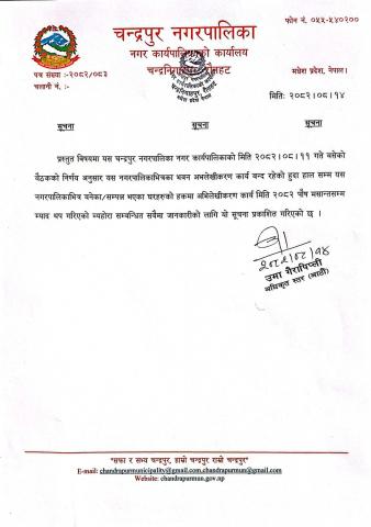 चन्द्रपुर नगरपालिकाको आ.व. २०७५/०७६ को २०७५ माघमसान्त सम्म भएको कार्यक्रमहरुको विवरण ।