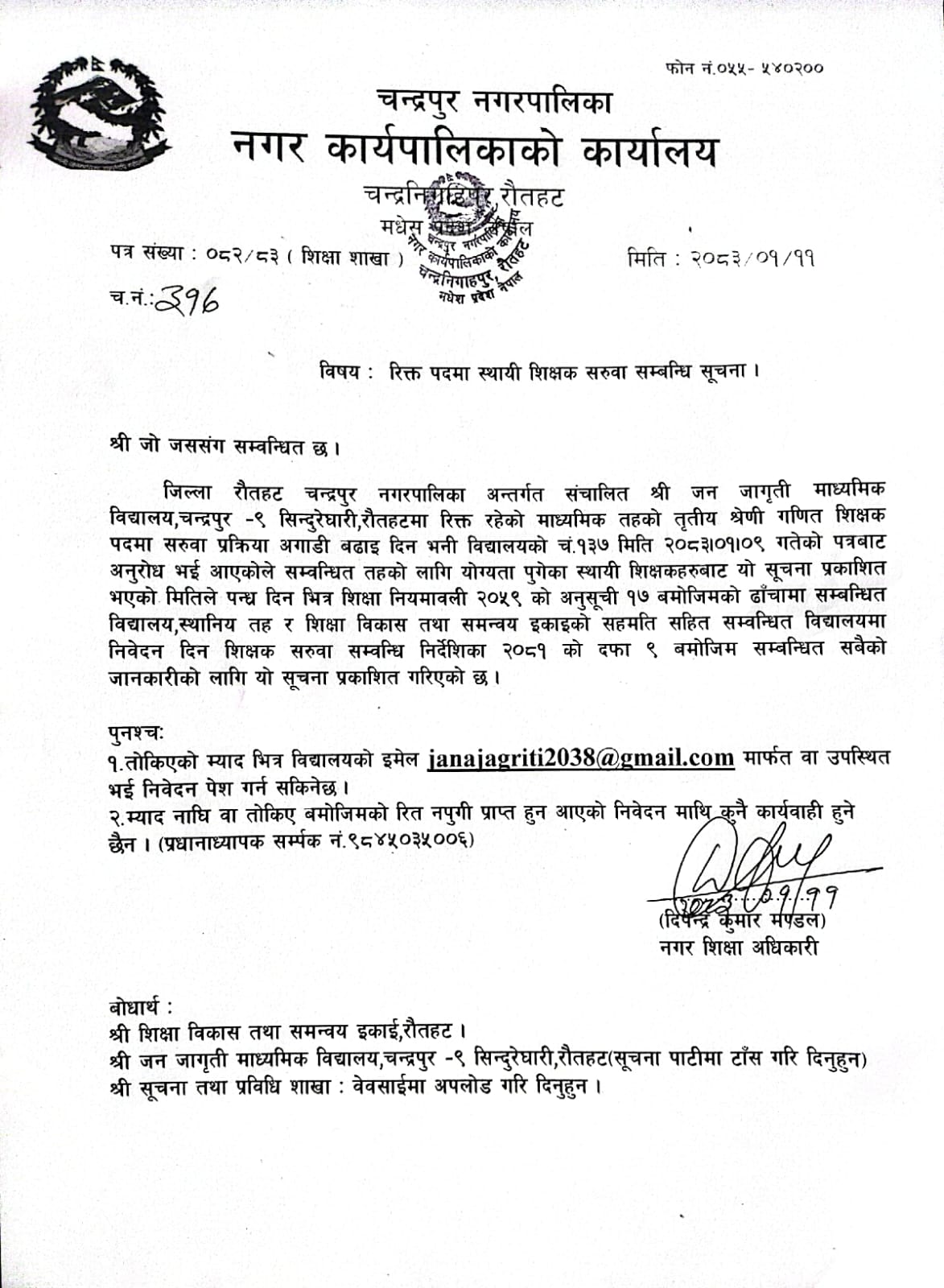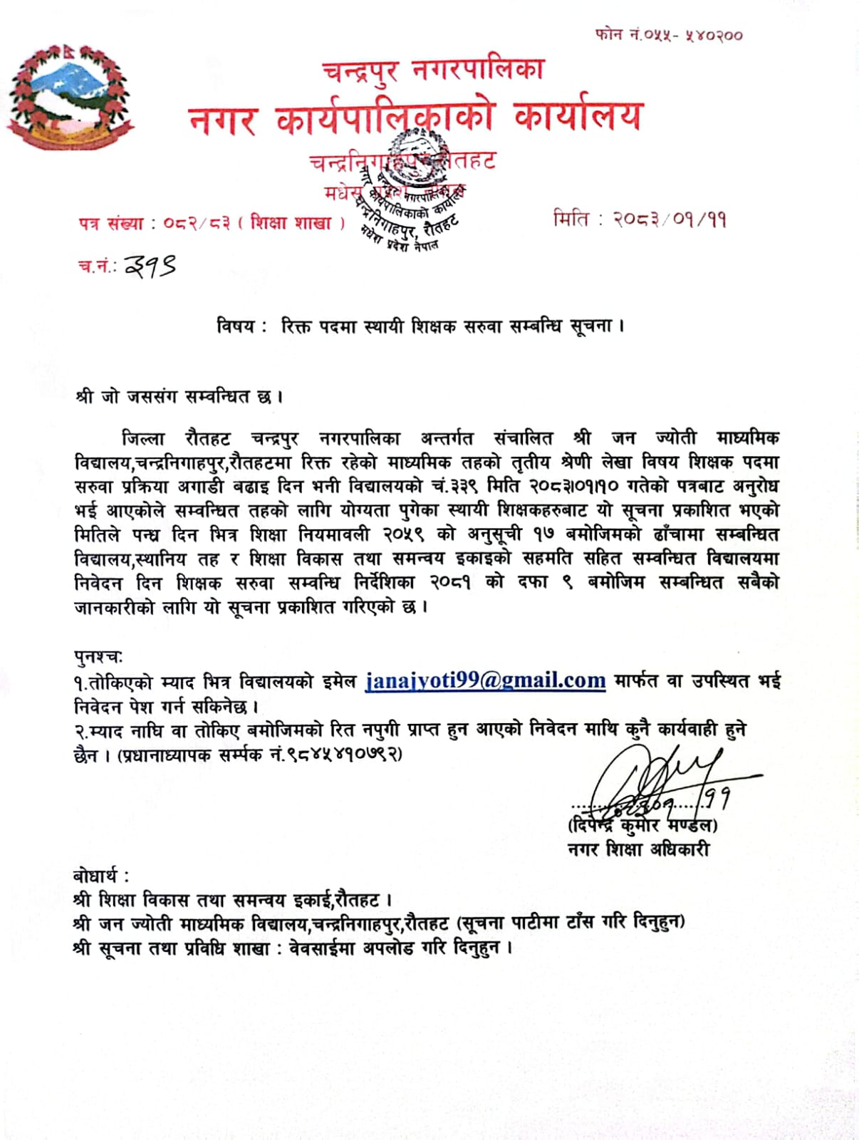 चन्द्रपुर नगरपालिकाको अनुरोध ।