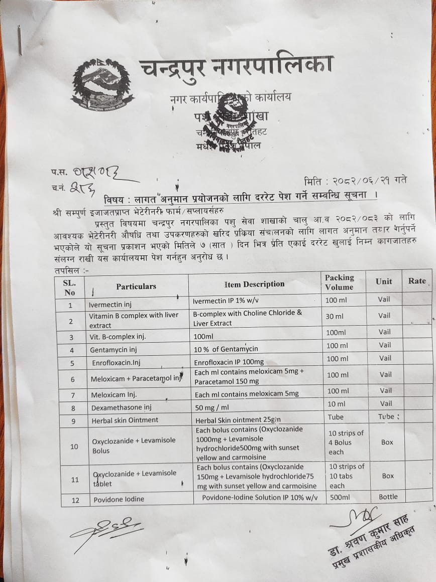 अा.व. २०७५।०७६ काे ठेक्का सम्बन्धी शिलबन्दी बाेलपत्र अाहवानकाे सूचना । प्रथम पटक प्रकाशित मिति २०७५।०४।१२