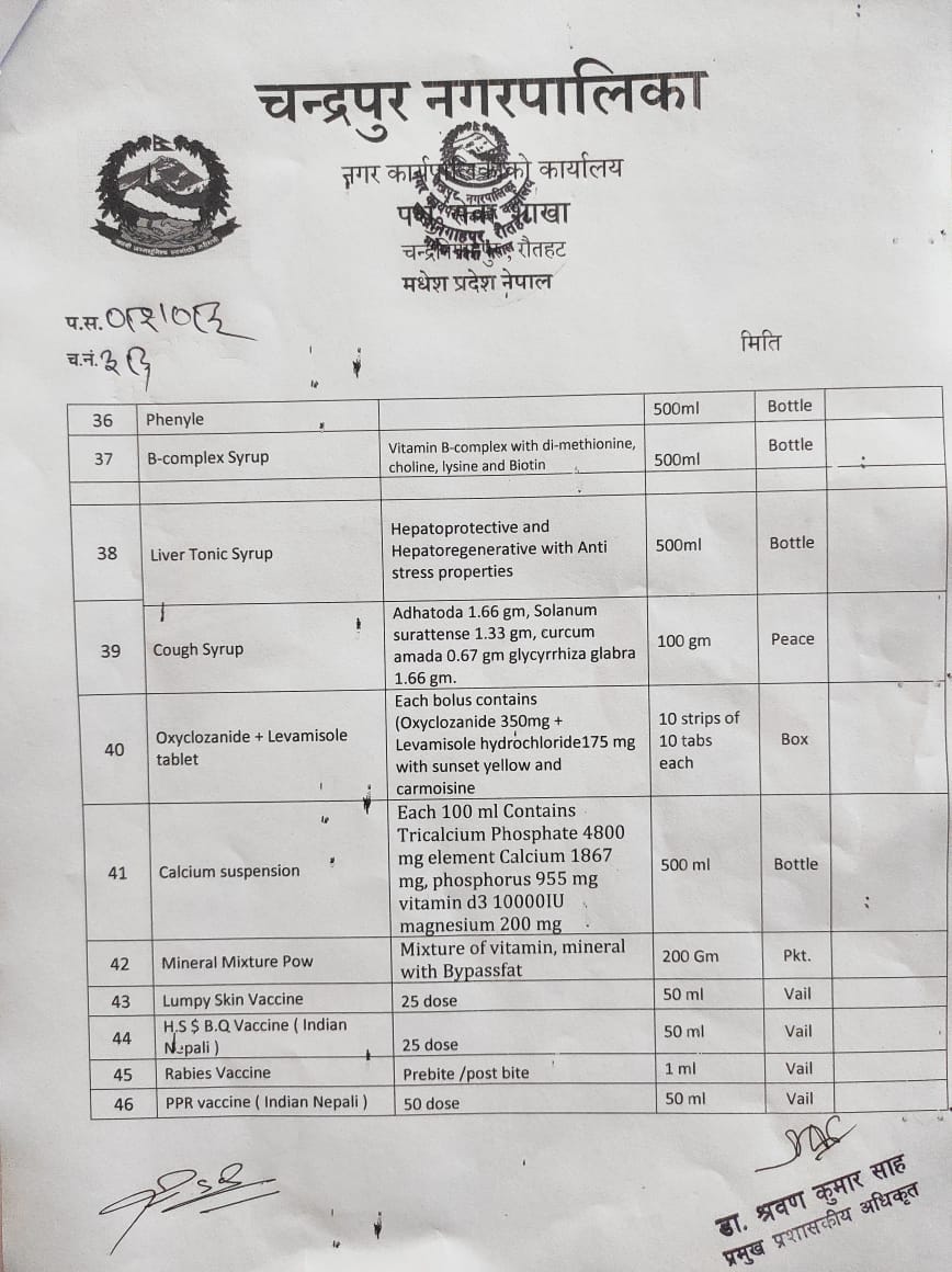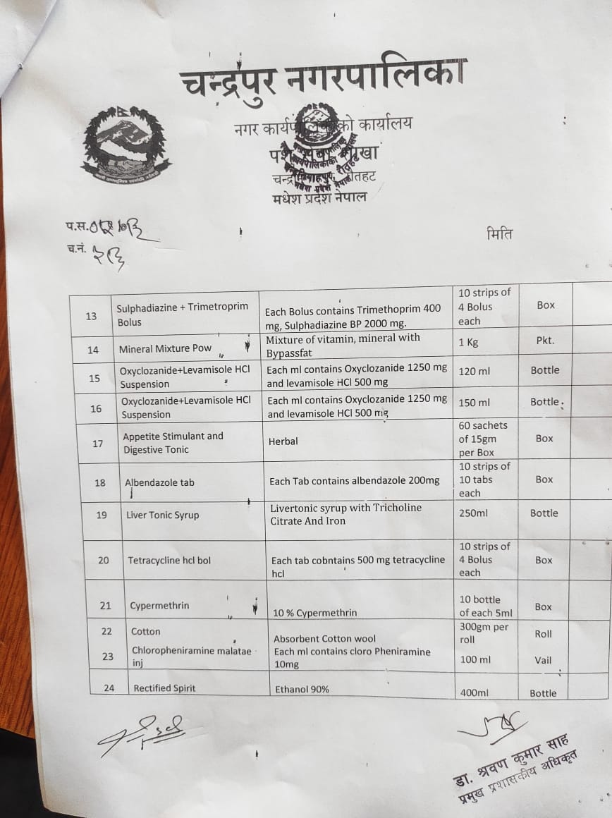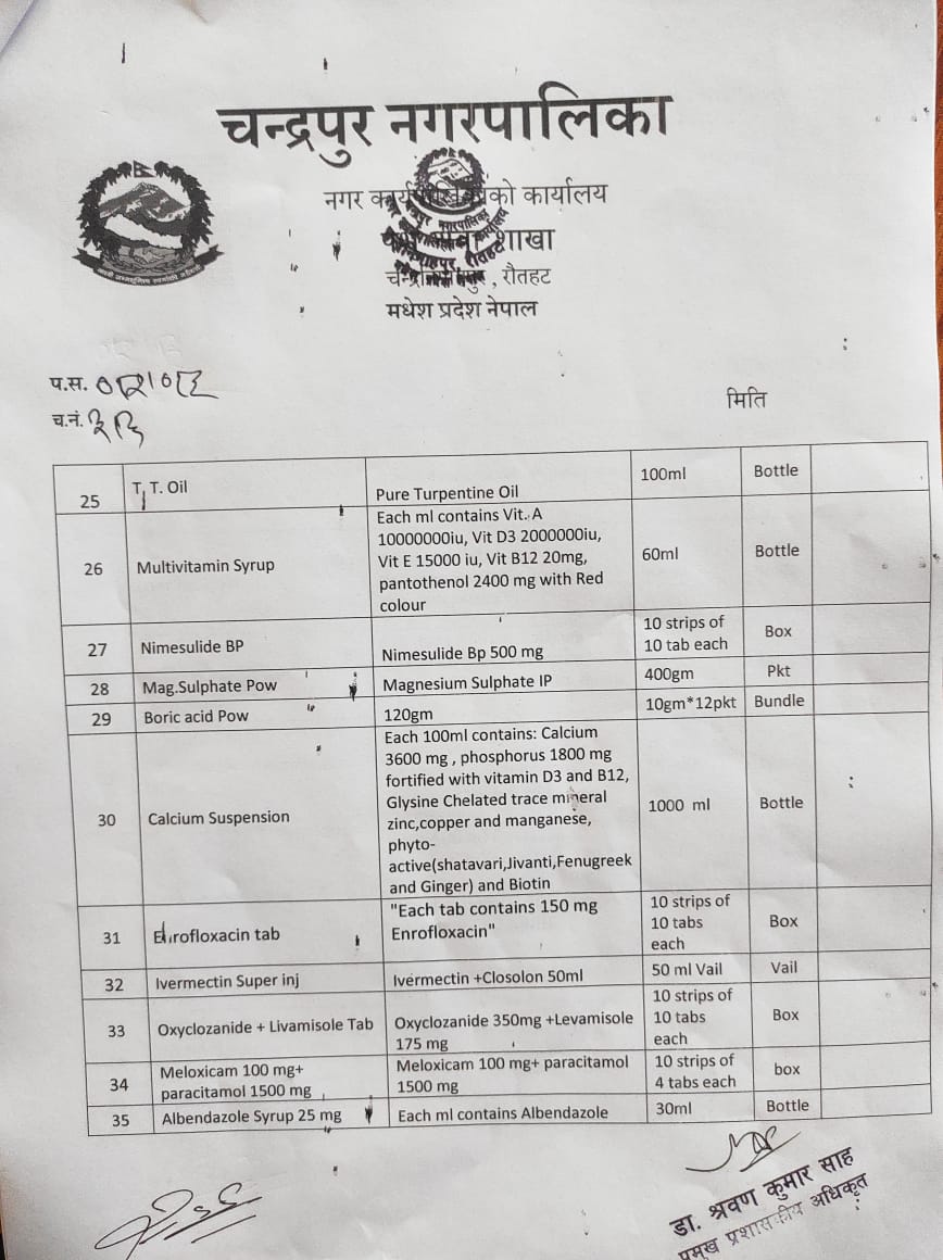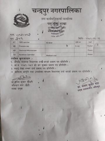 चन्द्रपुर नगरपालिकाको आ.व. २०७५/०७६ को २०७५ माघमसान्त सम्म भएको कार्यक्रमहरुको विवरण ।
