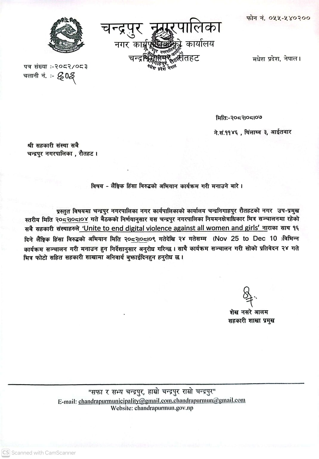 » लैङ्गिक हिंसा विरुद्धको अभियान कार्यक्रम गरी मनाउने सम्बन्धमा । सहकारी संस्थाहरु सबै ।
